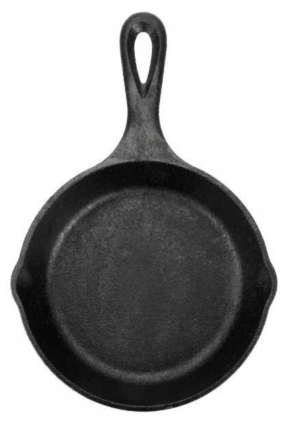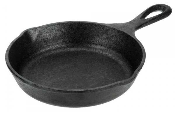 - + Маленькая чугунная сковородка - этим в принципе все сказано. Идеально если хочется по быстрому приготовить именно одну порцию горячего. Пожарить пару яиц / одну-две котлеты/ небольшой стейк...