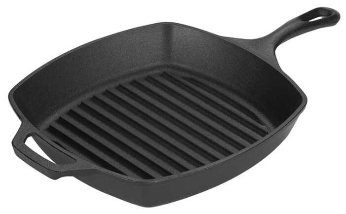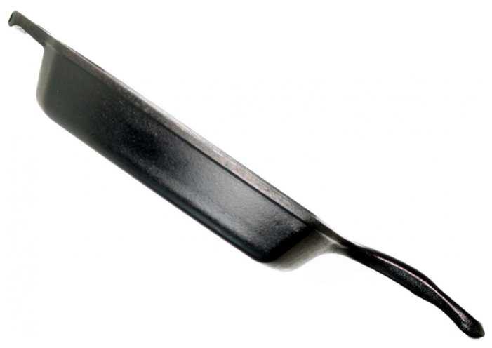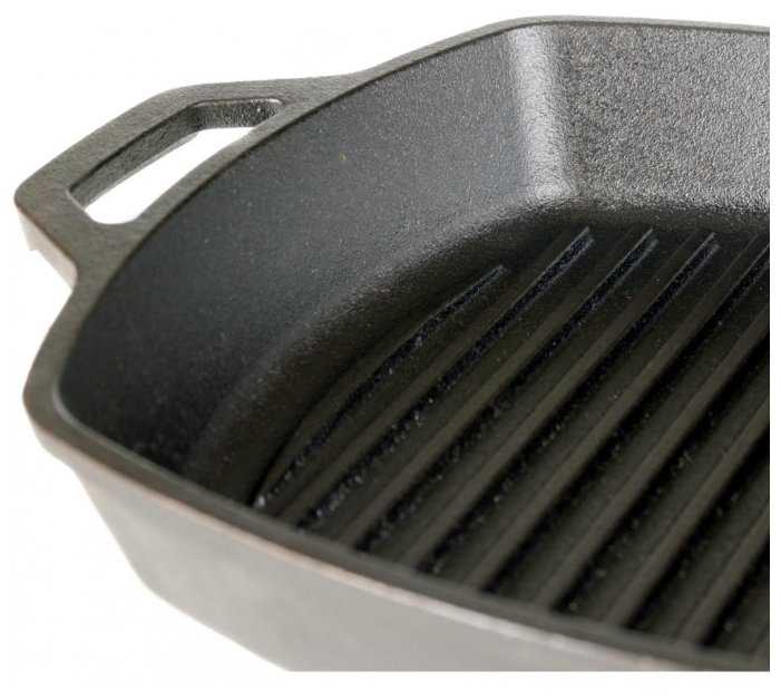 - + Тяжёлая. Ровная, гладкая поверхность. Точные формы рёбер гриля. Намного лучше любых стальных и алюминиевых сковородок. Долго держит температуру. Равномерно нагревается.