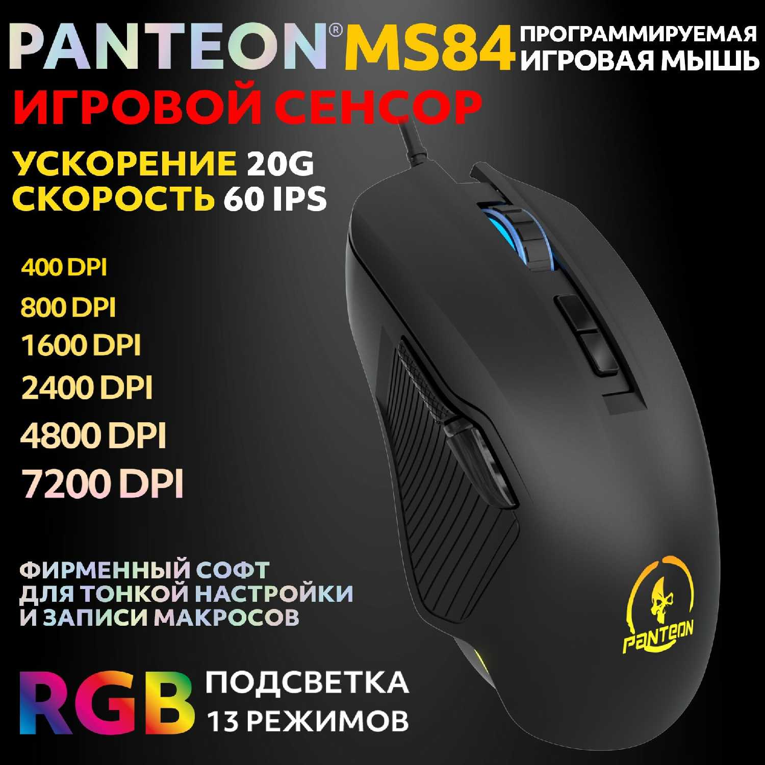 - Профили, макросы, DPI сохраняются в устройстве, не требует постоянного запуска.