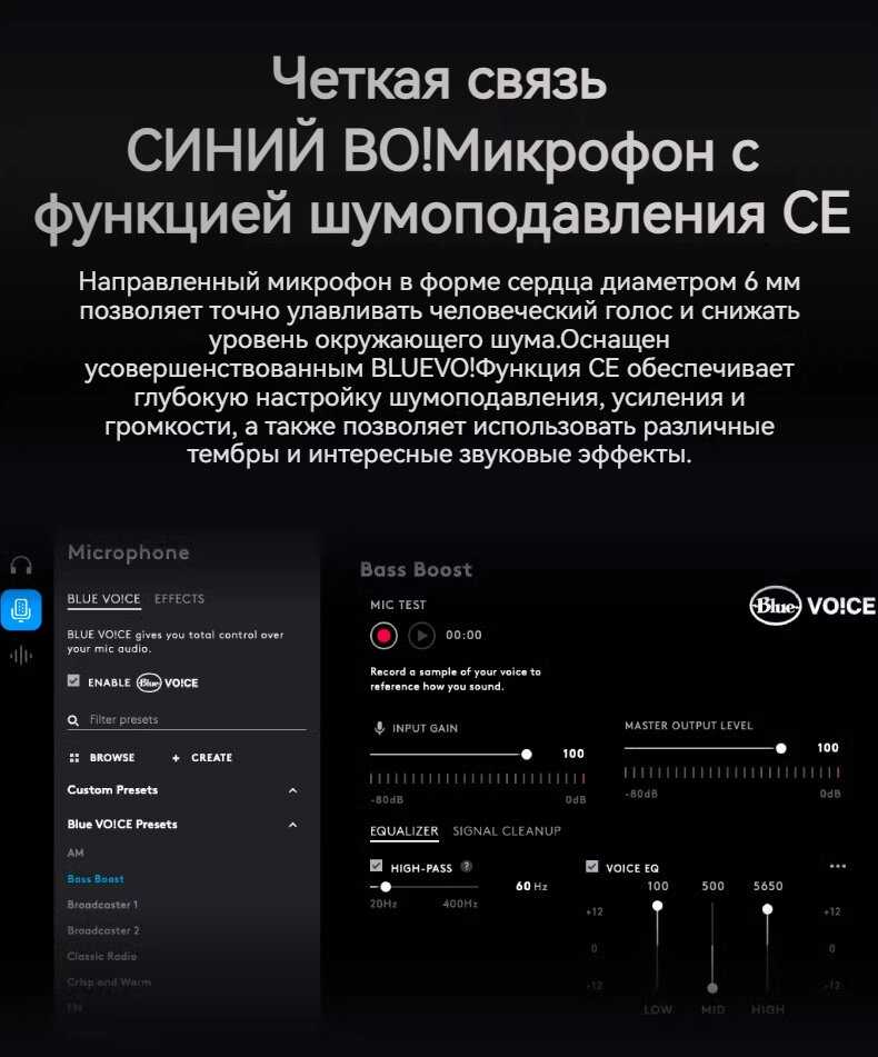 Стоковый звук микрофона без активации Blue Voice в G-Hub пользователи называют «как из телефона». После настройки шумоподавления и компрессии голос становится чётким, а фоновые шумы (клавиатура, вентиляторы) практически исчезают. В Discord и Skype микрофон показывает себя достойно, но для стримов или записи рекомендуется внешнее решение. -