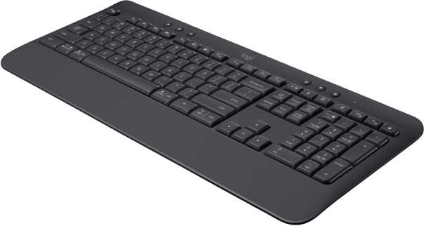 - + Вместе с мышкой logitech Signature к-650 приобрёл данную клавиатуру. Сразу отмечу очень удобное подключение на один датчик. Понятная процедура подключения. Данная полноформатная клавиатура ощущается как добротная вещь. Есть возможность подключения как по bluetooth так и по радио, нет проблем с потери связи. Доступные функциональные клавиши для изменения уровня громкости, перемотки треков мультимедия. Очень удобно изменять звук в приложениях и играх.