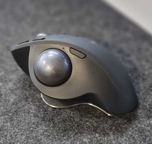 - + Понравилось несколько моментов. Можно менять наклон мыши — это реально удобно и помогает подобрать оптимальное положение для руки. Основные кнопки у меня лежат комфортно, именно под мою кисть, так что при работе усталости меньше. Шарик держится плотно, без люфта, не вываливается при переноске. Ещё забавный плюс: в офисе мало кто умеет на ней нормально работать, так что устройство остаётся в вашем распоряжении 😄