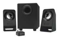 2. Провода. Не совсем уверен, кто в Logitech отвечает за такие вещи, но он очень старался и сделал провод от колонок к сабвуферу — метра полтора, а от сабвуфера к пульту и от пульта к мини-джеку (это единая конструкция) — около 3 метров. В результате саб невозможно поставить под стол, так как длины проводов банально не хватает. Зато пульт можно положить хоть на диван, но смысла в этом мало, так как вся система все равно оказывается на столе и на расстоянии вытянутой руки, зато под стол уходит длинная лапша ненужного провода саб-пульт-миниджек. По результатам пульт вообще бесполезен, все его возможности можно было разместить на сабвуфере или колонках.