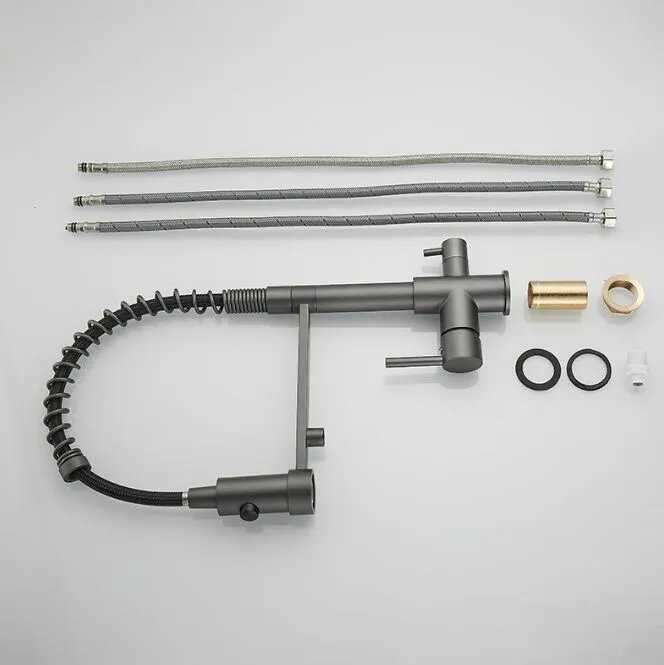 - + удобный, высокий, два режима переключения: струя и душ. Встроеный подвод на фильтр. Гибкая душка крана из шланга, но с защитной пружиной от перегиба, это очень удобно.