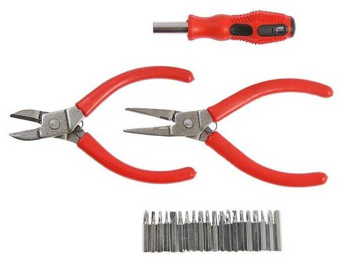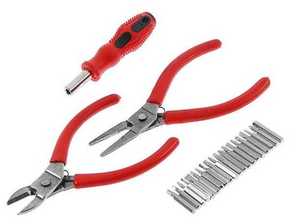Инструменты в комплекте : | бокорезы, клещи, кусачки, плоскогубцы |