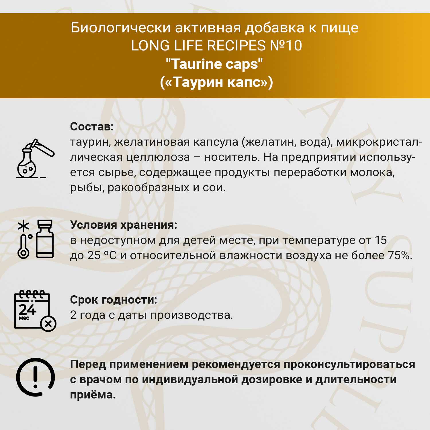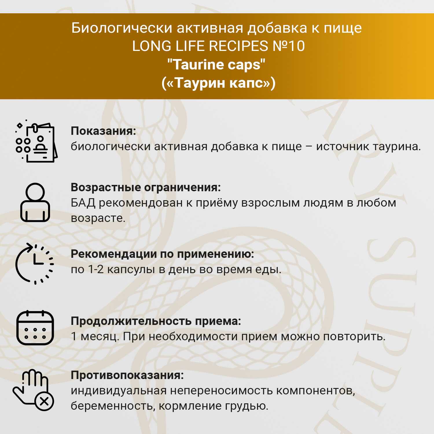 LONG LIFE RECIPES DIETARY SUPPLEMENTS Таурин ?
