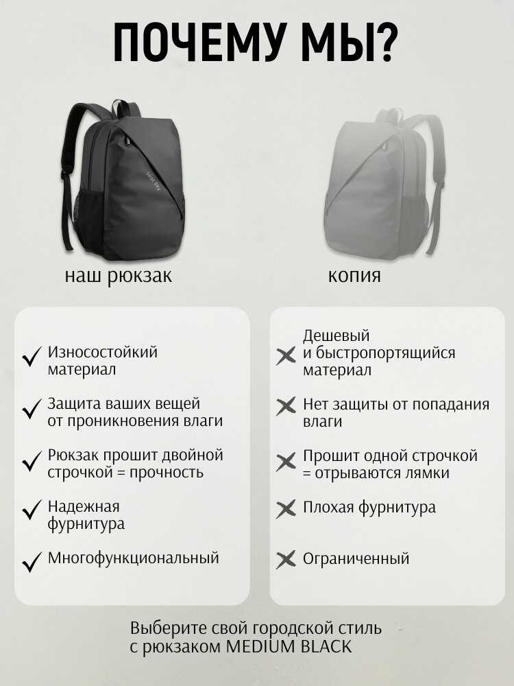 Сравнение с аналогами по ключевым параметрам: На фоне конкурентов в бюджетном сегменте рюкзак выигрывает за счет детализации организации хранения: число карманов превышает типовые решения в 1.5 раза, включая специализированный защищенный отсек для ноутбука. Легкость (200 г против 400-600 г у аналогов) — ключевое преимущество для мобильных пользователей. Однако уступает в прочности: модели с полиэстером 900D и усиленными стропами демонстрируют лучшую устойчивость к разрывам при нагрузках. Система вентиляции спины отсутствует — при длительной носке в жару появляется дискомфорт, тогда как конкуренты с сетчатыми панелями решают эту проблему. Молнии YKK у прямых конкурентов реже требуют ремонта в первые 3 месяца эксплуатации.
