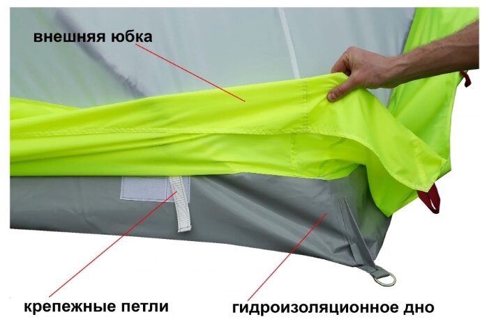 - - нет отверстия под верхнюю вытяжку, при установке внутреннего и наружного тента в самой палатке нет отверстия а в тентах есть.