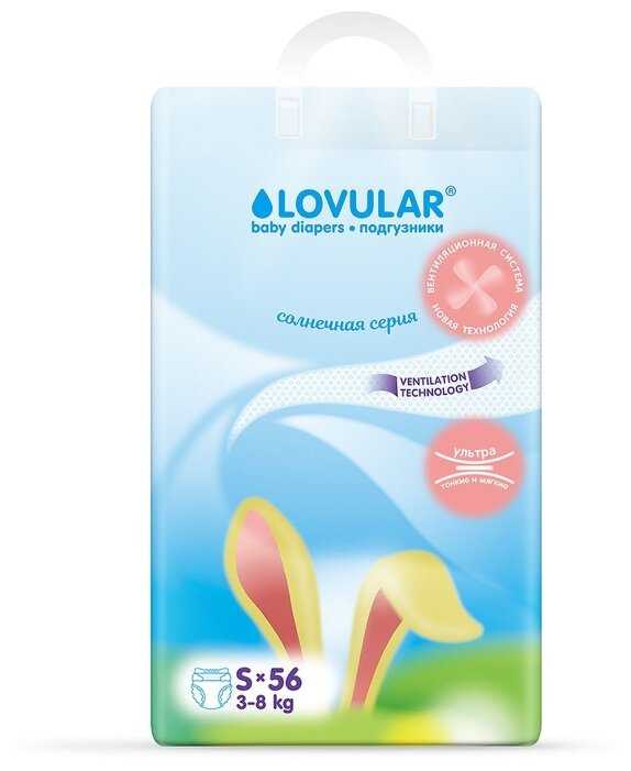 LOVULAR подгузники Солнечная серия S, 3-8 кг — 44 отзывов, плюсы и минусы