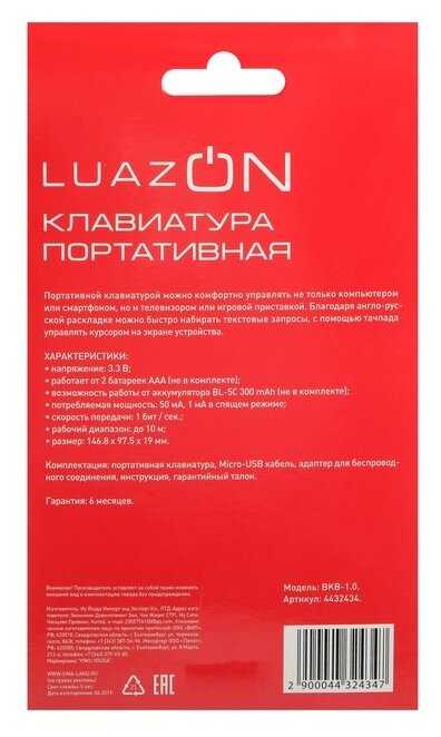 Характеристи LuazON BKB-1.0 Black