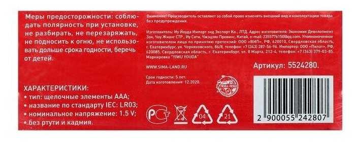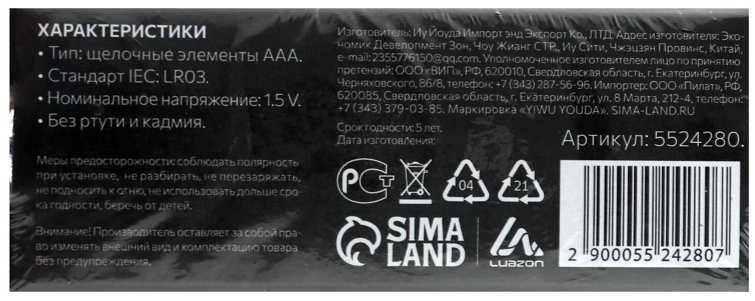 Лучшие цены сегодня на Luazon Home AAA (LR03)