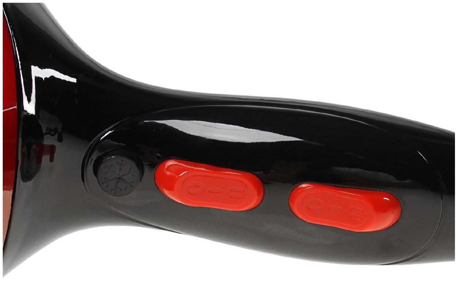Выглядит очень презентабельно. Такой можно и на подарок взять. Плюс по карману покупка не ударит. С тем учетом, что фен бюджетный, у него достаточно хороший поток воздуха и температура нагрева. Волосы до плеч сушит быстро и сильно не перегревает. Нет этого обжигающего воздуха, от которого хочется отвернуться. Волосы после фена выглядят чистыми и блестящими. Есть возможность регулировать температуру нагрева и скорость подачи воздуха. Кнопки сделаны в виде переключателей и нажимаются легко. Мне не очень нравится, что они попадают прям под мои пальцы из-за чего я бывает случайно переключаю режимы, если сильно сожму рукоятку.