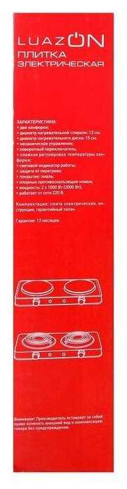 - + Компактная электрическая плитка LuazON — удобный прибор для приготовления и разогрева пищи. Тепло быстро и равномерно распределяется по рабочей поверхности благодаря высокой мощности.
