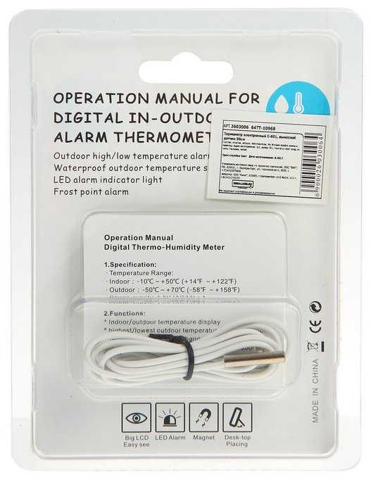 Купил термометр в прозрачной блистере - легко открыть без инструментов. Инструкция нужна, которая помогает понять, что и как настроить, но там английский...
