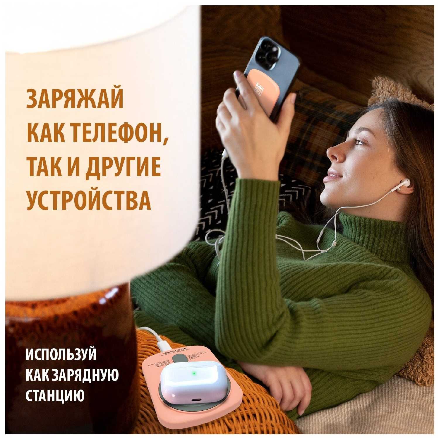 - Хватает на полный заряд смартфона или несколько подзарядок iPhone, выручает в поездках и на работе.