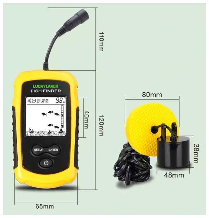 Дополнительная информация : | тип питания — 4 литиевые батарейки типа ААА, минимальная глубина сканирования проводного датчика — 07 м, выбор уровня чувствительности (высокий/низкий), шкала глубины нахождения рыбы и дна, выбор единицы измерения (метр/фут), автоматическое выключение датчика при прекращении контакта с водой |