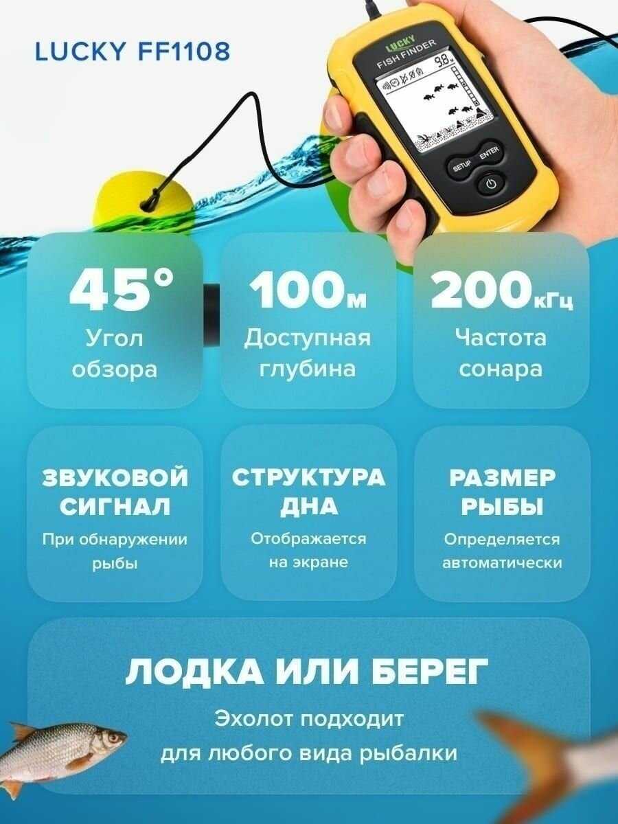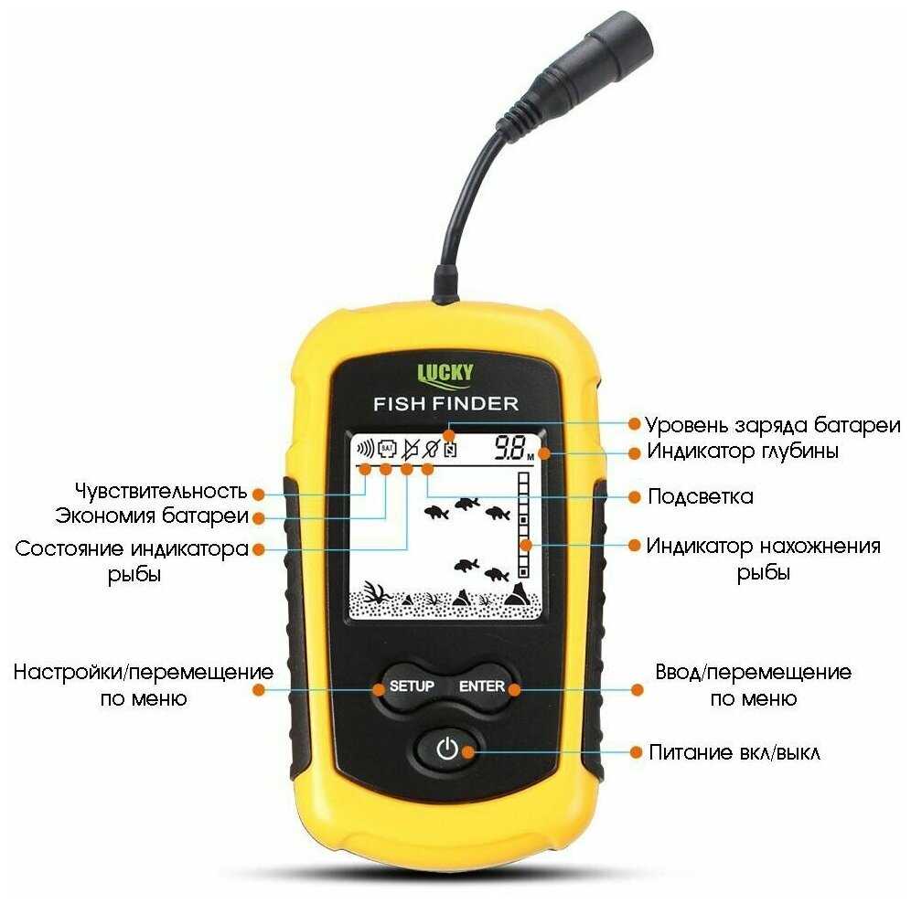 | Конструктивные особенности : | беспроводной, влагозащищенный корпус, для зимней рыбалки, нижнее излучение, с дисплеем, трансдьюсер в комплекте |
