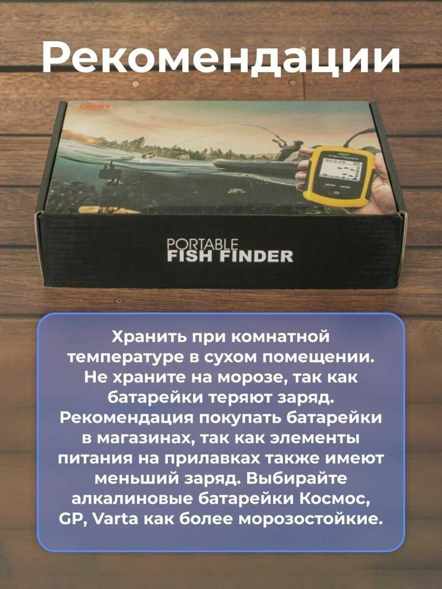 Конструктивные особенности : | беспроводной, влагозащищенный корпус, для зимней рыбалки, нижнее излучение, с дисплеем, трансдьюсер в комплекте |