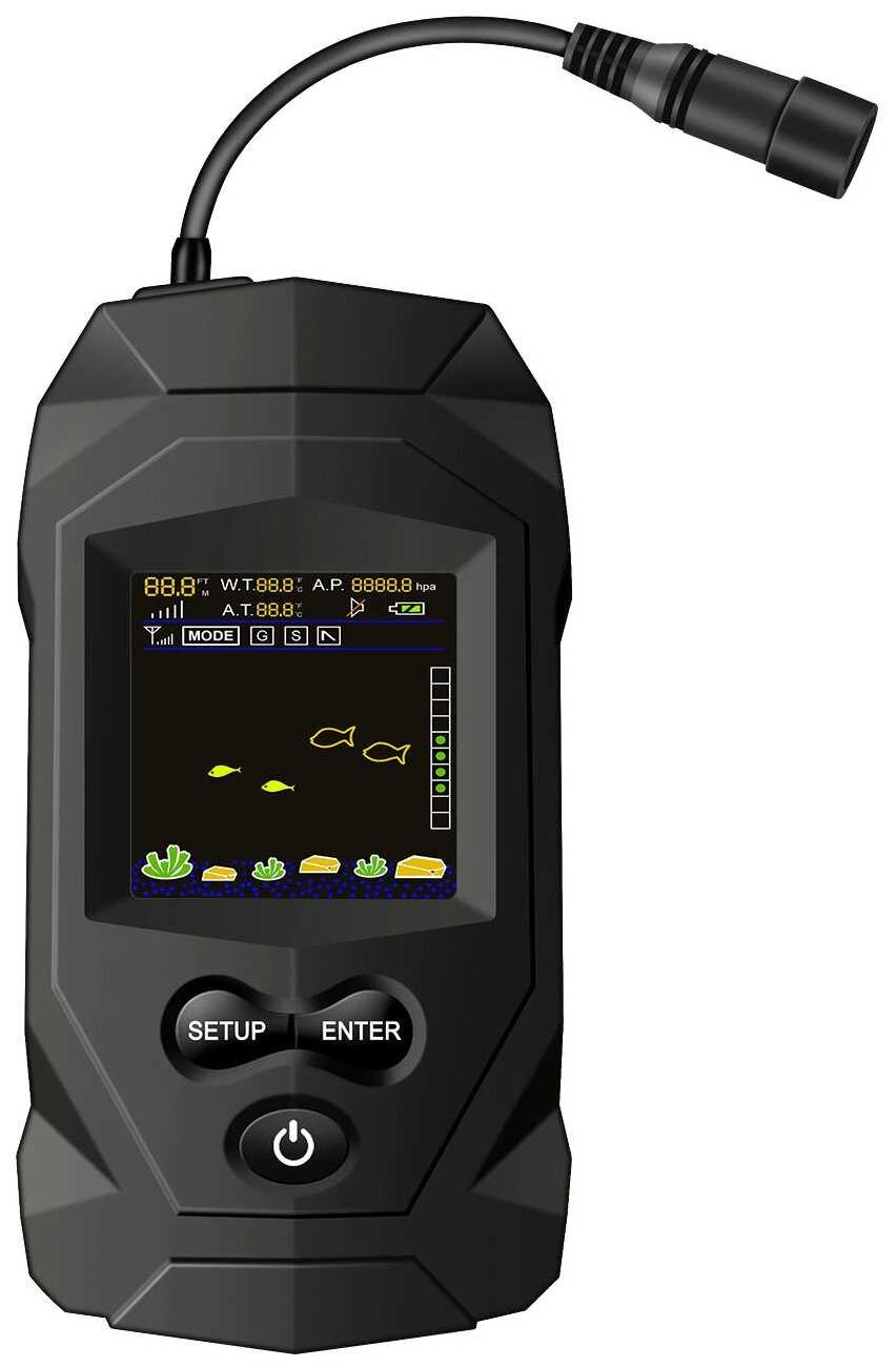 | Функции и интерфейсы : | GPS, датчик температуры, звуковая сигнализация, определение глубины рыбы, отображение структуры дна |