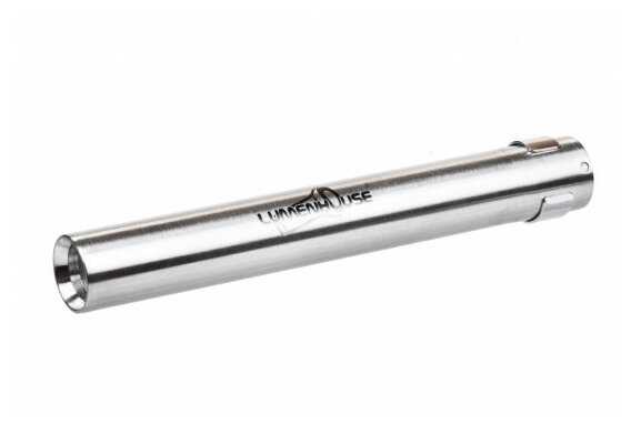 - + Качество изготовление корпуса из нержавейки просто потрясает. Хоть фонарик и состоит из трех частей, увидеть стыки деталей просто нереально!