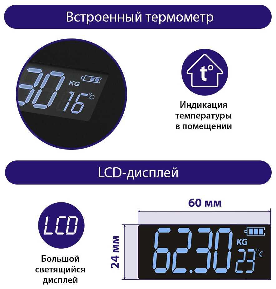 Очень довольна покупкой. Когда строго следишь за своим здоровьем, такие весы просто незаменимы. Стоят совсем недорого, а возможностей очень много. Они измеряют вес, температуру окружающего воздуха, показывают долю жировой и мышечной ткани и, вдобавок, даже делают расчет ИМТ. Память весов рассчитана на восьмерых пользователей. Несмотря на многофункциональность, весы очень простые в использовании.