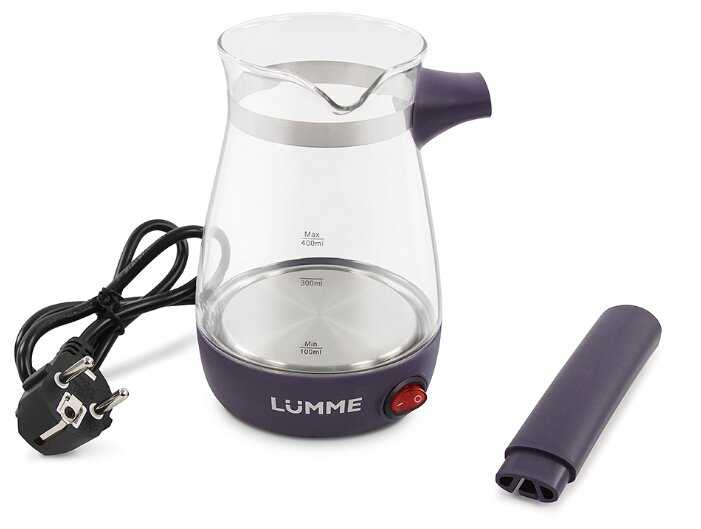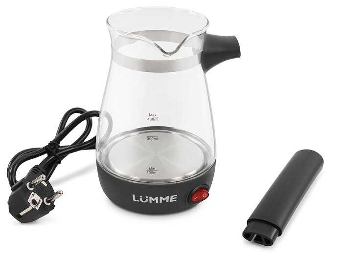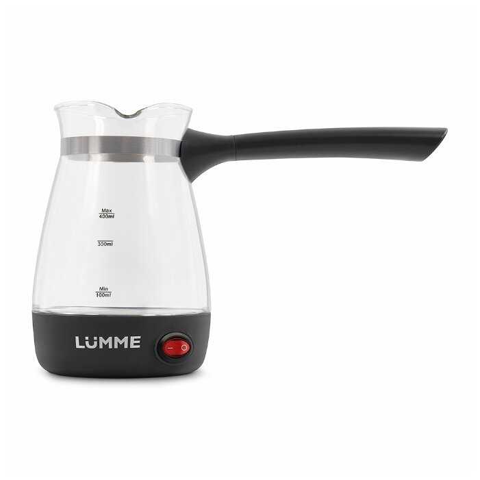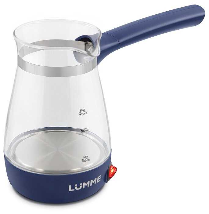 Я раньше кофе готовила в металической турке на плите , но как только узнала что они бывают и электрические решила попробовать на такой и купила LUMME LU-1632. Это оказалась очень удобной , понравилась она мне тем, что объёма её нам на семью как раз хватает и она сама стеклянная и мне просто нравится смотреит как варится в ней кофе. А самое главное достоинство в том что кофе в ней переварить простот не возможно даже при желание по тому что при закипание она сразу отключается.