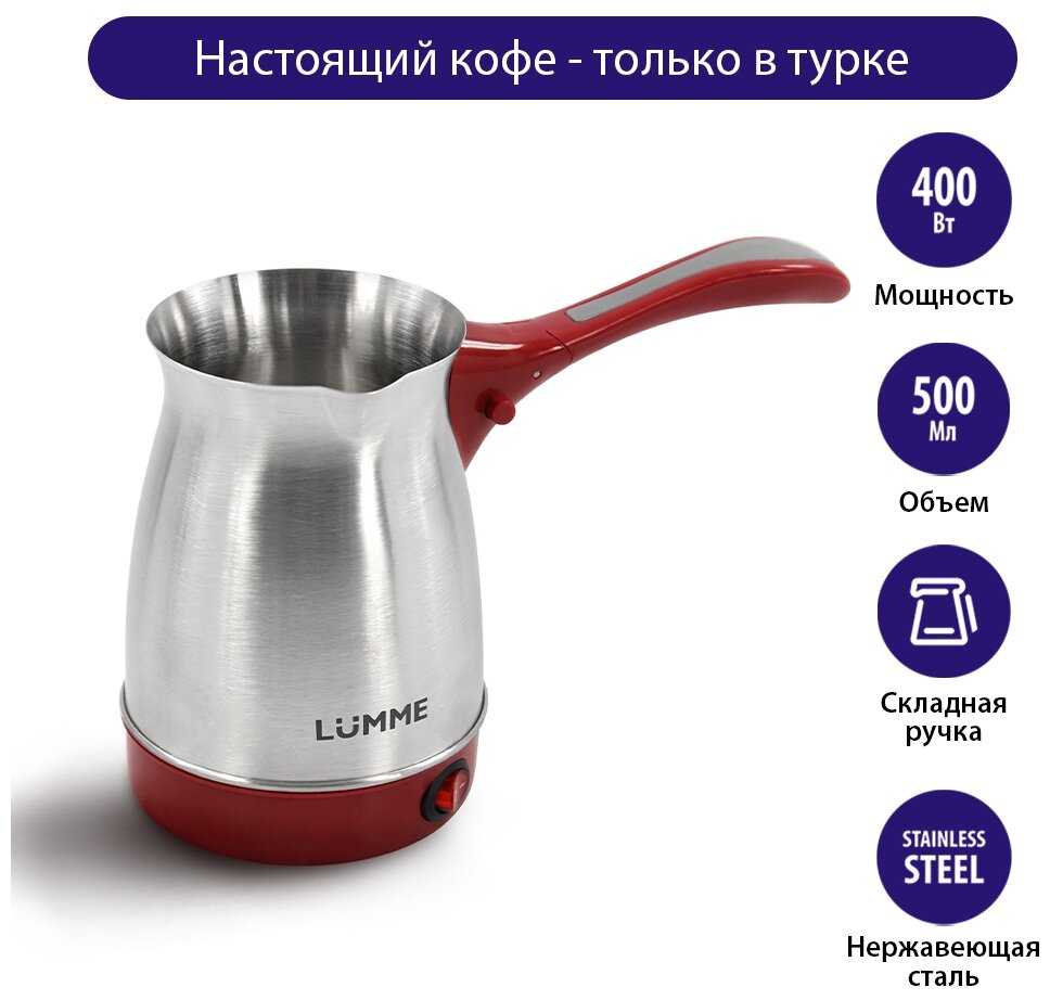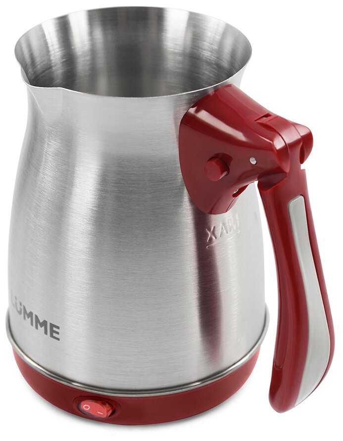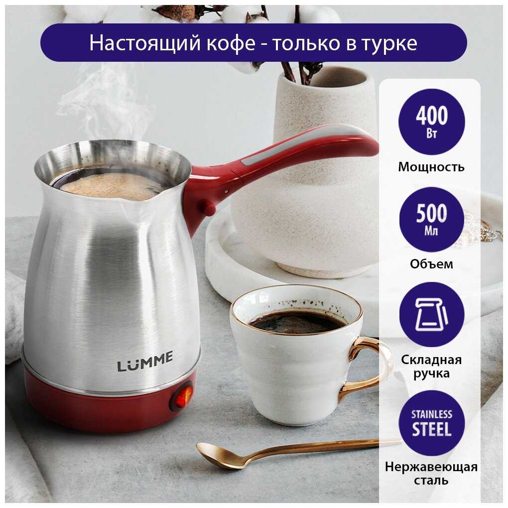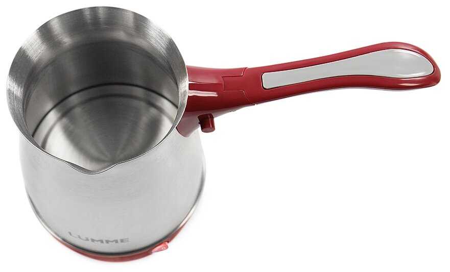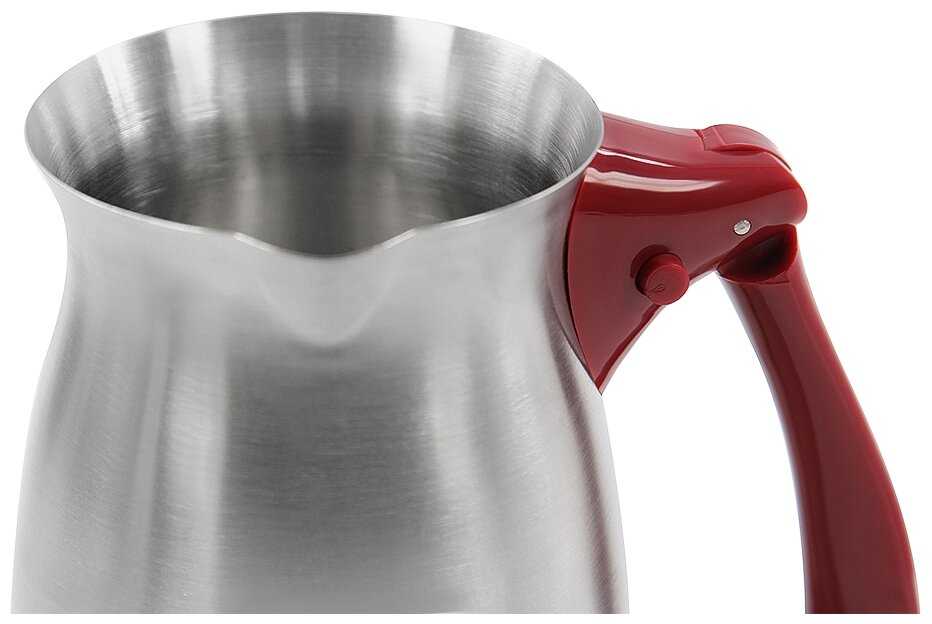 - + Простое управление, складная ручка, турка объемная. на 500 мл. Кофе варит быстро, для молотого. Легко очищается после использования