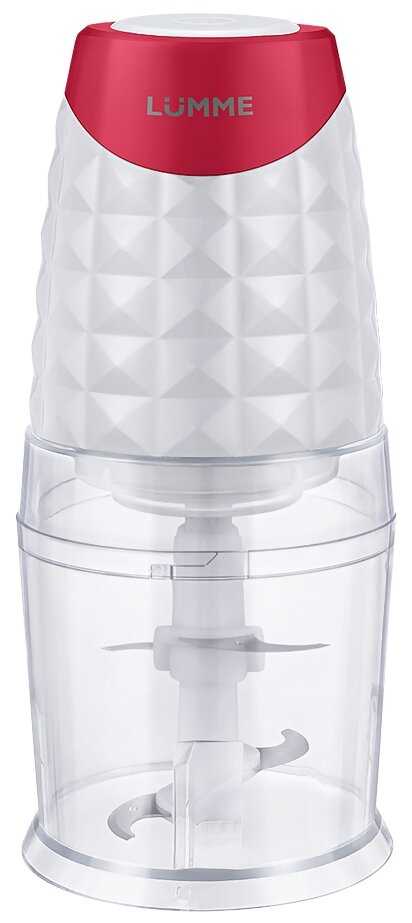 Измельчитель Lumme LU-1845 представляет собой компромисс между компактностью и функциональностью. Его главное преимущество — способность быстро обрабатывать небольшие порции продуктов (до 150-200 г) благодаря двойным ножам из нержавеющей стали. Чаша объёмом 600 мл с прозрачными стенками идеальна для контроля степени измельчения, а эргономичный дизайн позволяет хранить устройство даже в тесных кухнях. Прибор особенно хорош для лука, зелени, орехов и мягких овощей, где демонстрирует стабильный результат без необходимости ручного вмешательства. Однако ограничения по времени непрерывной работы (не более 1 минуты) делают его непрактичным для больших объёмов — приготовление 0.5 кг фарша может занять до 20 минут с перерывами на охлаждение.