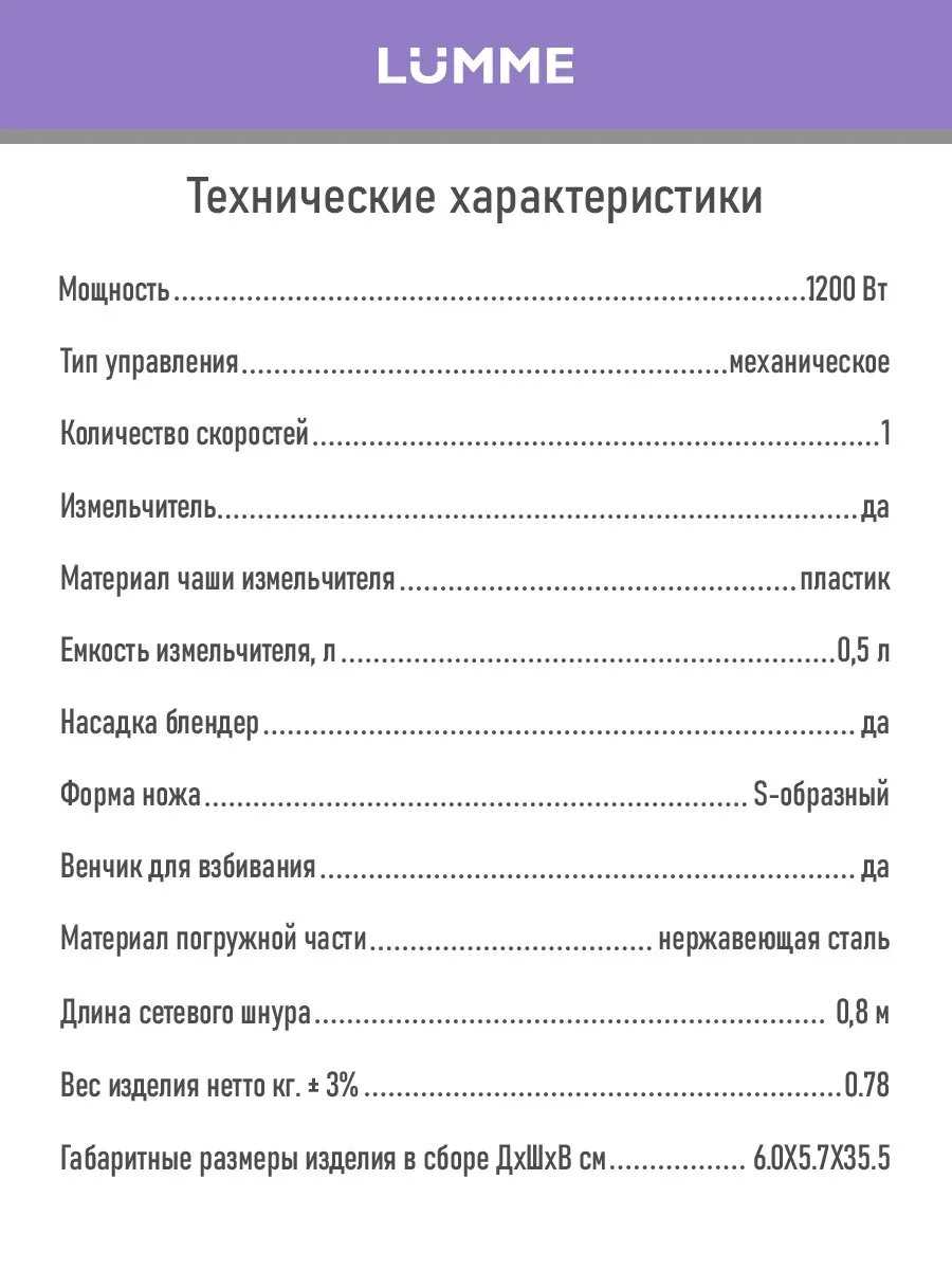 Характеристи Lumme LU-1888