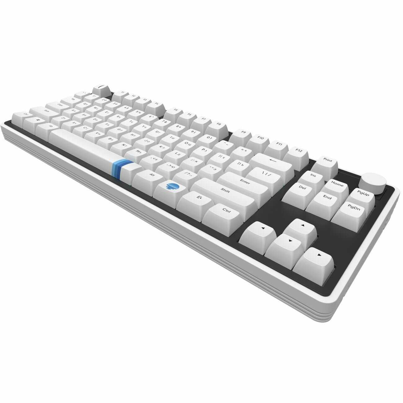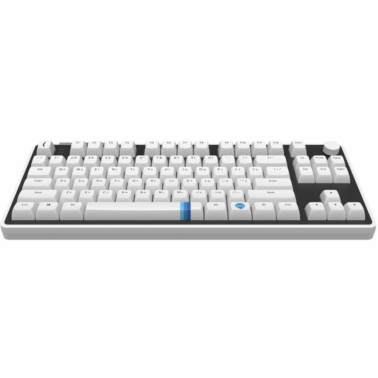 Качество сборки, материалов и общая конструкция: Корпус клавиатуры выполнен из качественного пластика с хорошей покраской, без заусенцев и видимых дефектов литья. Общий вес устройства оценивается пользователями как средний, что обеспечивает его устойчивость на столе без скольжения по коврику. Конструкция не скрипит и не имеет люфтов при активном использовании, что свидетельствует о надежной сборке. Кейкапы изготовлены из ударопрочного пластика идеального белого цвета, однако их поверхность является маркой и требует частого обслуживания. В комплектации присутствуют дополнительные свитчи и кейкапы для замены, что расширяет возможности кастомизации. Техническая поддержка бренда оперативно реагирует на запросы пользователей и предоставляет дополнительные комплектующие, такие как свитчи, для самостоятельного обслуживания. Некоторые пользователи отмечают, что клавиатура является OEM-продуктом на базе модели Dark Project KD87A, но с измененным дизайном и комплектацией. От оригинала она отличается отсутствием модульного нумпада, хотя соответствующий порт на корпусе присутствует, что позволяет докупить его отдельно. Крутилка регулировки громкости имеет неоднозначные отзывы: часть пользователей отмечает ее удобство, другие жалуются на наличие мертвой зоны и неплавный ход. Магнитные пластиковые вставки по бокам корпуса вызывают вопросы у пользователей относительно их функционального назначения.