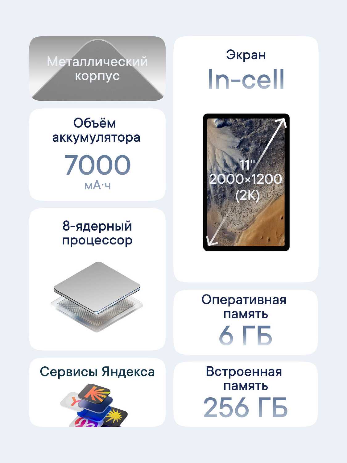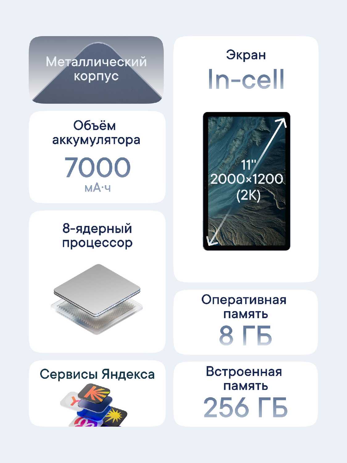 - + Порадовала цена — за небольшие деньги планшет даёт много возможностей. Экран яркий, насыщенный и без заметной синевы, изображение реально хорошее. Корпус алюминиевый, ощущается прочным, при этом Wi‑Fi ловит нормально даже через стены. В комплекте очень качественная зарядка и кабель в магнитной оплётке — прям приятно. Дизайн приятный и немного необычный, радует внешне. Для социальных сетей, просмотра видео и простых задач устройство справляется отлично.