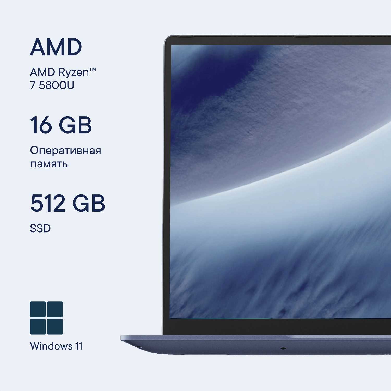 - + Ноутбук просто топ! AMD Ryzen 7 5800U тянет всё, что нужно, даже тяжелые программы. 16 ГБ оперативки — никаких лагов, даже с кучей вкладок. SSD на 512 ГБ быстрый, система летает. Экран 16 дюймов, Full HD — картинка четкая, цвета классные. Дизайн стильный, цвет Indigo Sea радует глаз. Windows 11 удобная и быстрая. В общем, ноутбук огонь, советую!