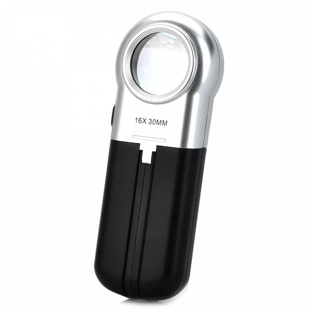 PRO LEGEND Лупа ручная круглая 16x-30мм для чтения с подсветкой (2 LED)