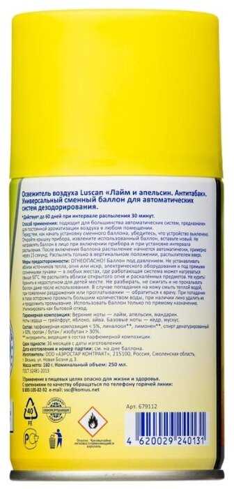 43 отзывов пользователей o Luscan сменный баллон Лайм и апельсин. Антитабак 250 мл