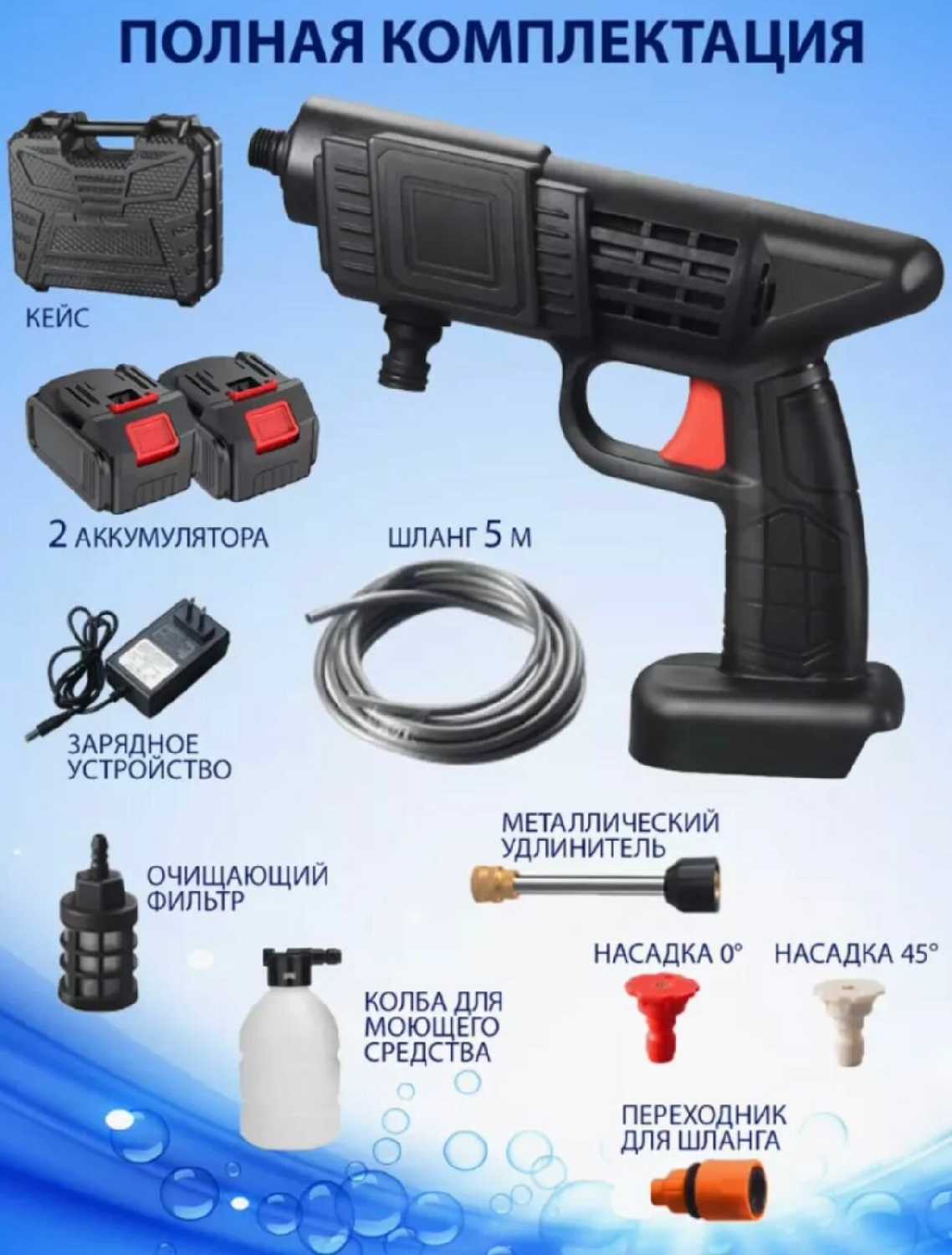 Функциональность и комплектация: сильные и слабые стороны. Пользователи высоко оценивают комплектацию: две насадки (узкая струя для сильного напора и веер для распыления), два аккумулятора (в идеале), кейс для хранения и переноски, а также пеногенератор. Возможность использовать любой источник воды (ведро, бутыль 5л) через всасывающий шланг – ключевое удобство. Однако пеногенератор требует тонкой настройки соотношения воды и моющего средства ("нужно привыкнуть, найти соотношение") и часто не обеспечивает густую пену ("выгоняет моющее на раз, а пены ноль"). Шланг всасывания критикуется за излишнюю жёсткость или, наоборот, мягкость, всплывание без грузика и общую ненадёжность, многие рекомендуют его сразу заменить.