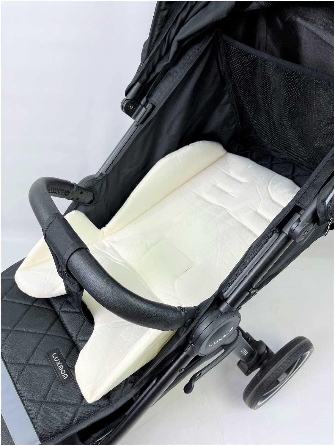 бампер, горизонтальное положение спинки, мягкие накладки на ремни, регулировка высоты подножки, регулировка наклона спинки, ремни безопасности, смотровое окно, съемный бампер