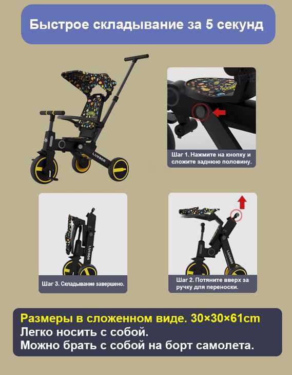 - + Легкий и компактный, легко складывается, удобно брать с собой