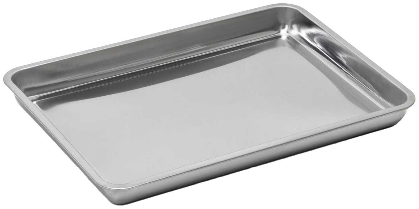 - + Отличный противень. Легко отмывается. В отличии от тёмных и пятнистых - грязь, если она есть, хорошо видно