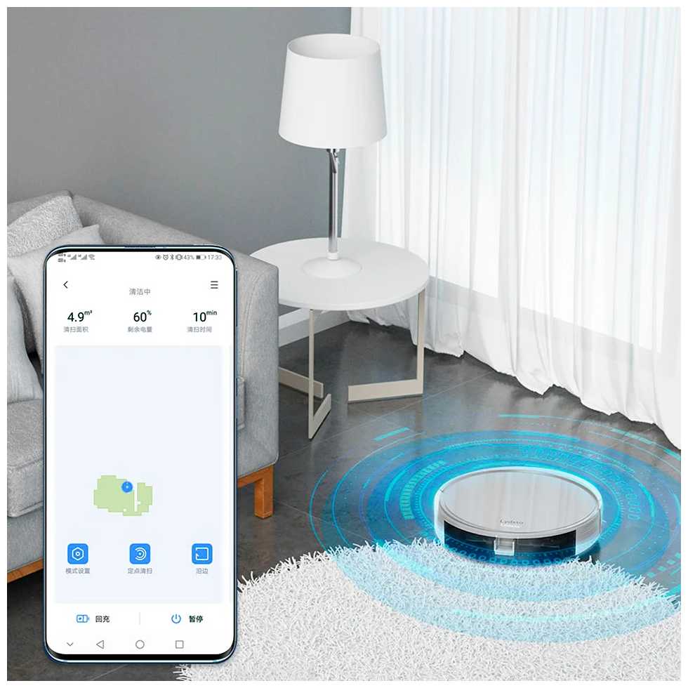 - Настройка расписания, выбор режимов уборки (например, вдоль стен), ручное управление через Wi-Fi.