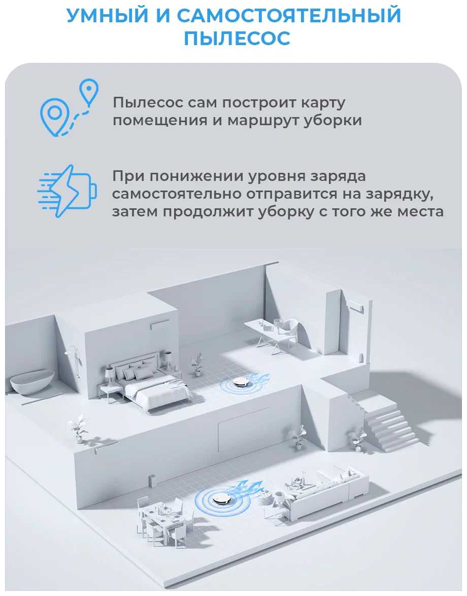 - + Управление через Алису. Вообще, очень удобный и практичный девайс. Хорошо убирает мусор