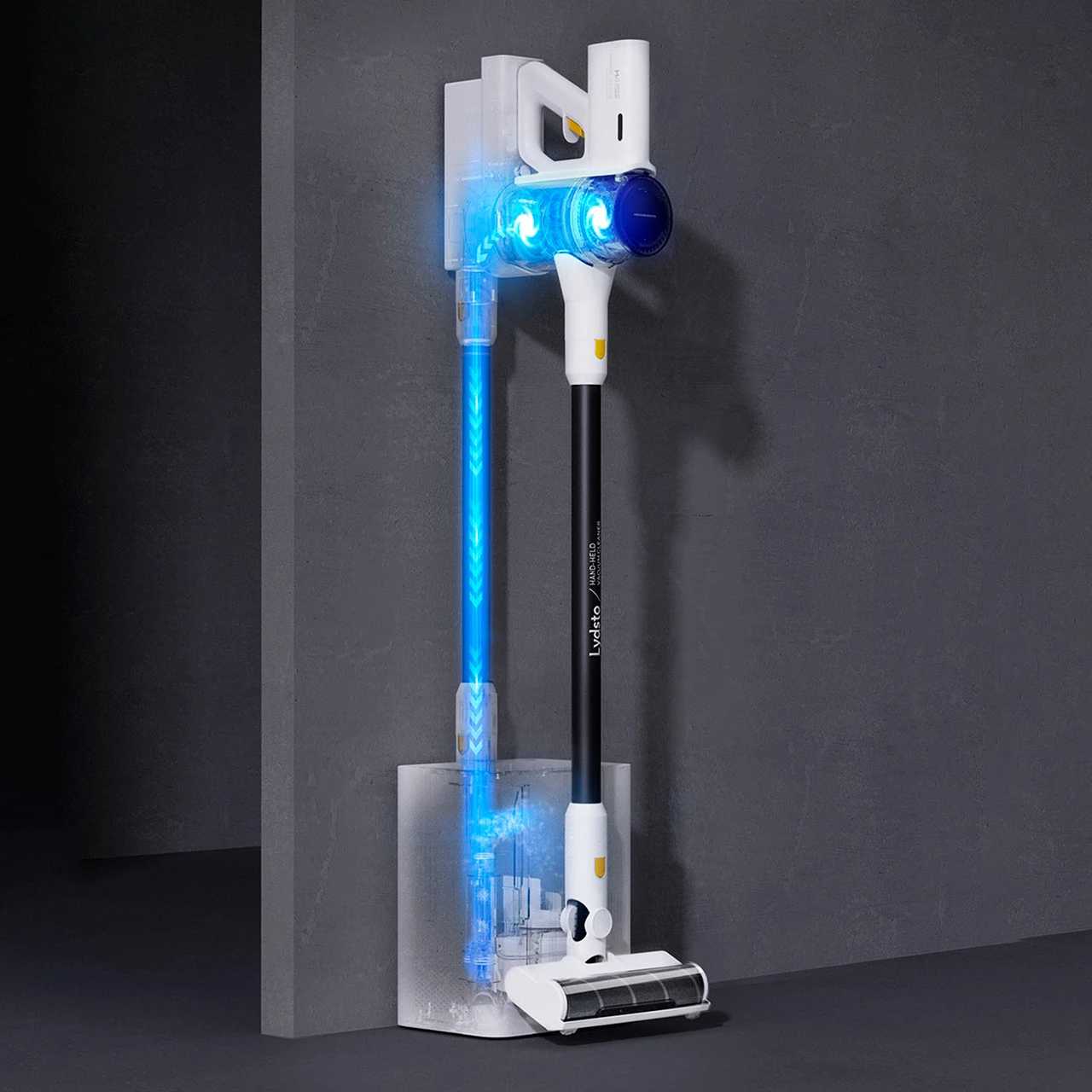 вертикальная парковка, индикатор заполнения пылесборника, управление мощностью на рукоятке