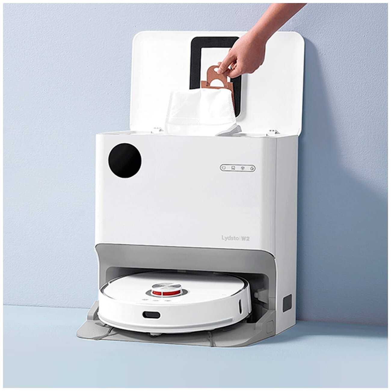 База полностью освобождает контейнер робота от сухого мусора, фильтрует воду после мойки тряпок и удаляет грязь в отдельный мешок. Но под платформой станции скапливается вода, а дренажные трубки подвержены засорам при использовании моющих средств. Мешок для пыли требует замены раз в 1–2 месяца. -