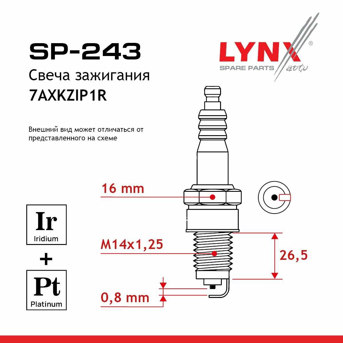 Характеристи LYNXauto Свеча зажигания (7AXKZIP1R)
