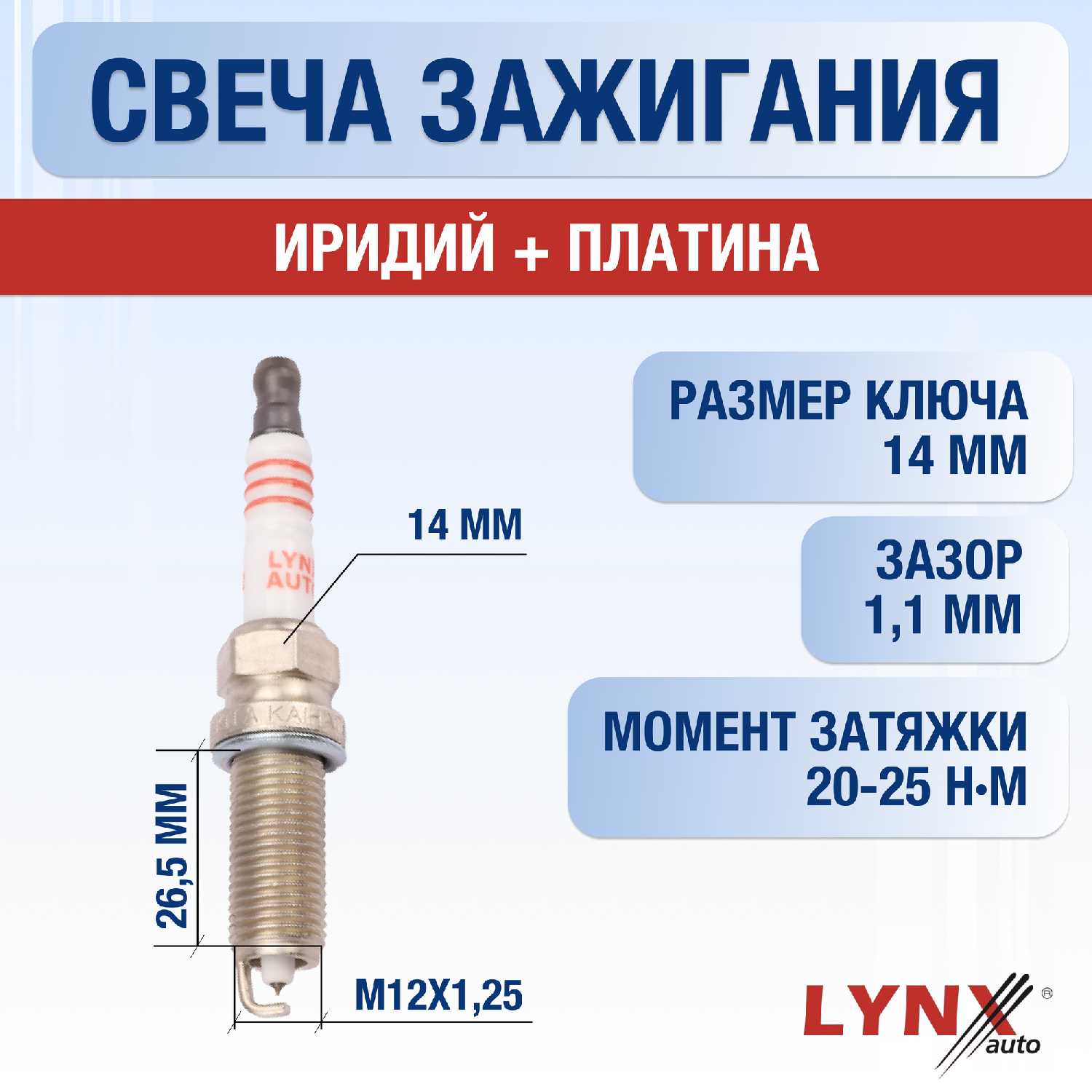 Характеристи LYNXauto свечи зажигания (1ZR-FAE, 1ZR-FE)