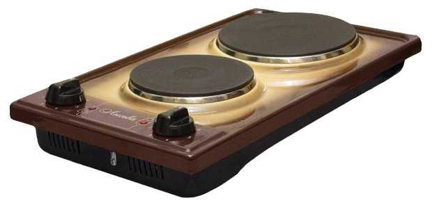 - + Отличная мощность: одна из конфорок 1200вт, вторая 1000вт. Быстрый нагрев!!!