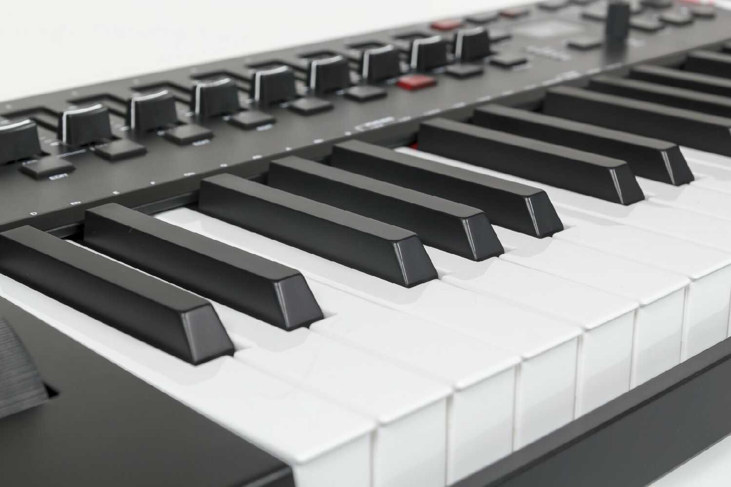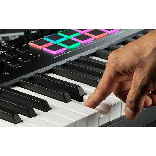 - + Продуманный дизайн и отличный функционал. Есть послекасание клавиш. Встроенный выбор используемой DAW сразу на дисплее клавиатуры. Арпеджиатор, выбор ладов, программирование игры аккордов одной клавишей и т.п. Подходит и для лайвов и студийной записи. Есть разъем MIDI-OUT и возможность автономной работы по МИДИ без DAW. Подсветка пэдов и кнопок не слепит даже в темноте. Любое действие тут же отображается на дисплее. Работает прекрасно в BitwigStudio под Linux Mint. Диезныые клавиши емеют по краям "скосы" что делает более комфортной игру при неоходимости зажатия белых клавиш между диезными (у некоторых производителей таких скосов нет и пальцы просто застревают нажимая и белую и диезные клавиши по краям). Уверен- это лучшее соотношение цены и качества в полупрофессиональном сегменте.