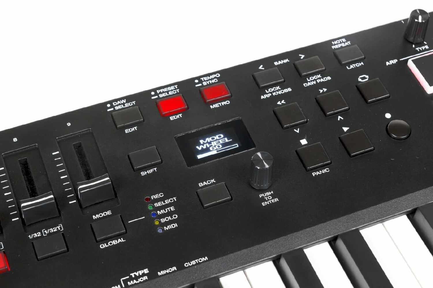 Функции и опции : | арпеджиатор, дисплей, совместимость с DAW, чувствительность клавиатуры к послекасанию |