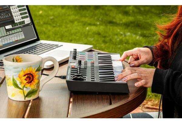 | Функции и опции : | арпеджиатор, дисплей, совместимость с DAW, чувствительность клавиатуры к касанию |