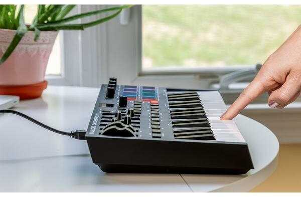 Функции и опции : | арпеджиатор, дисплей, совместимость с DAW, чувствительность клавиатуры к касанию |