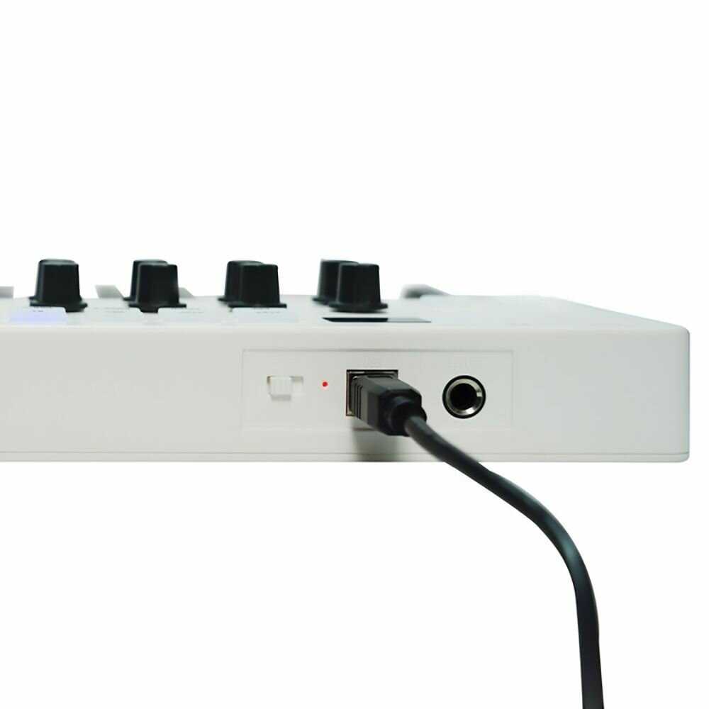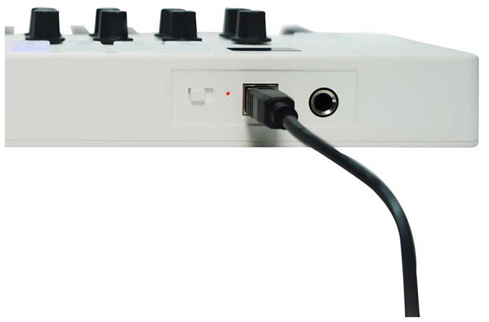 - Компактные 25 клавиш (3 октавы) занимают мало места на столе, не ёрзают.